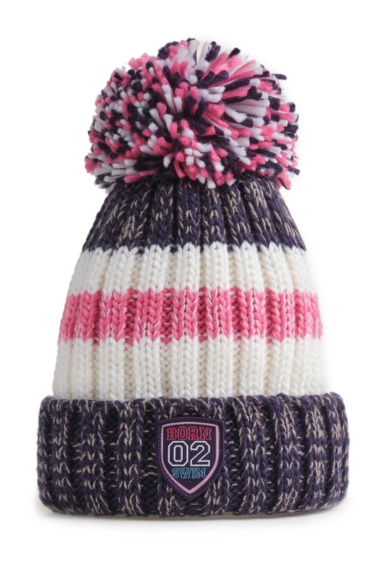 Navy Pink Rib Knit Hat