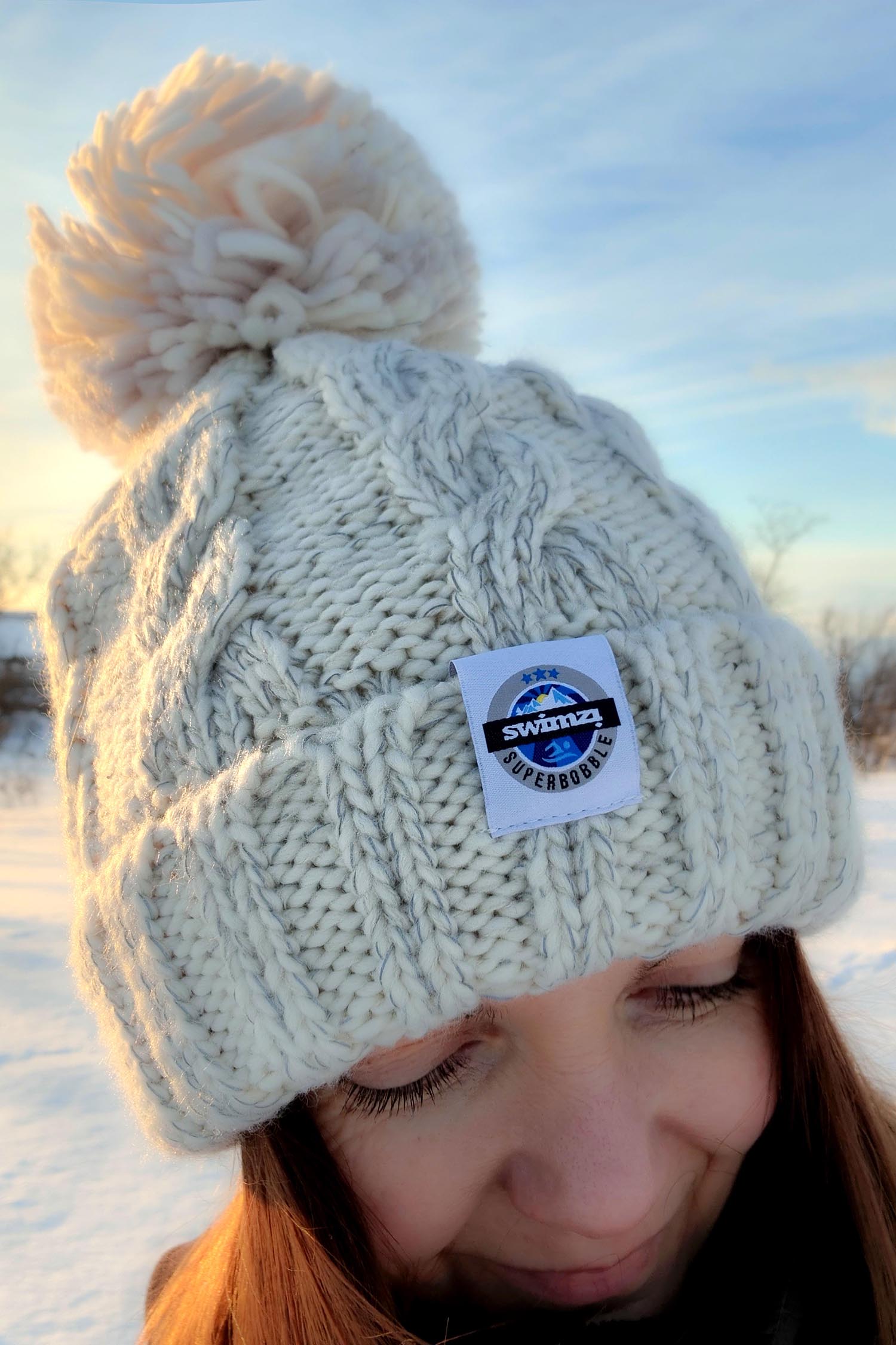 A classic cable knit SuperBobble hat in a beautiful pale oatmeal and cream design.The SuperBobble bobble hat is not your average winter accessory; it’s the epitome of comfort, warmth, and style. Crafted with the finest materials, this hat features a luxurious sherpa lining, providing an unparalleled softness and insulation against the cold with the added benefit of reflective yarn to the headband and pom pom. The exterior boasts a classic bobble design, adding a playful touch to its practicality. Whether you're hitting the slopes, dog walking or strolling through the city streets, the Superbobble bobble hat ensures you stay cozy and chic wherever you go.