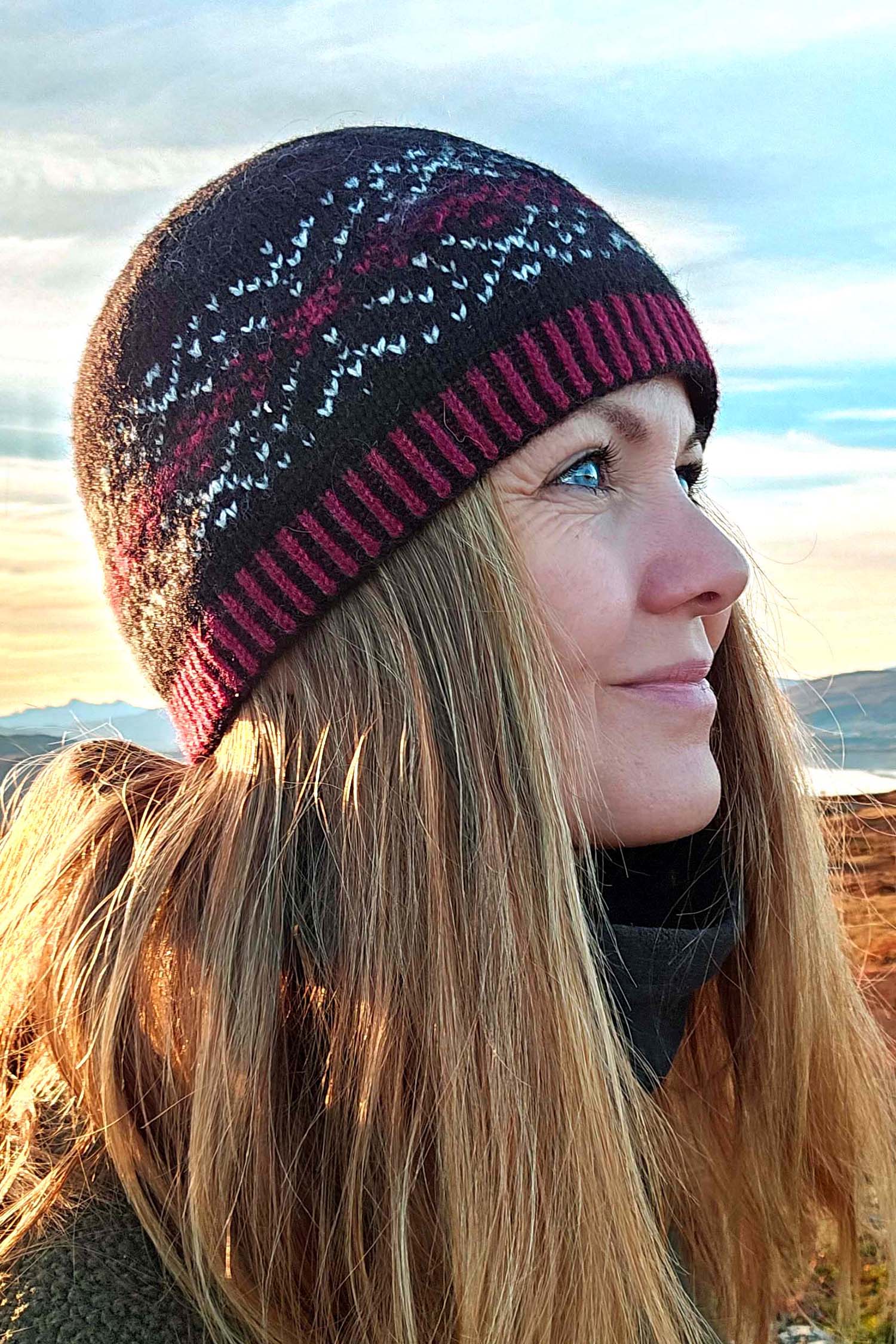 Unisex fairisle knit adventure beanie in black and red with reflective yarn used within the white yarn, the perfect winter accessory.. Introducing our Hestur reflective Fairisle Beanie – a perfect fusion of tradition and sustainability. Made with 50% recycled polyester, it features original designs and a natural colour palette. A micro-fleece headband adds warmth, while breathable knit ensures comfort. Inspired by the British Isles, this eco-conscious beanie blends style and function for every adventure. • Fairisle knit - selected refleective yarn Dimensions: |