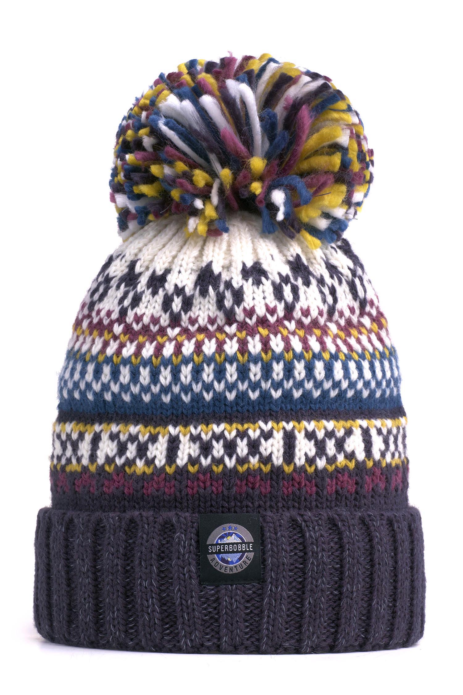 Unisex Nordic knit design superbobble hat with reflective yarns to headband and pom-pom with a luxury sherpa fleece lining. Our Nordic design is a Superbobble favorite. This striking deep navy, ox-blood red, fjord blue and cream features a traditional pattern from the far north of mainland Europe. The SuperBobble bobble hat is not your average winter accessory; it’s the epitome of comfort, warmth, and style. Crafted with the finest materials, this hat features a luxurious sherpa lining, providing an unparalleled softness and insulation against the cold with the added benefit of reflective yarn to the headband and pom pom. The exterior boasts a classic bobble design, adding a playful touch to its practicality. Whether you're hitting the slopes, dog walking or strolling through the city streets, the Superbobble bobble hat ensures you stay cozy and chic wherever you go. • Traditional Nordic knit • Headband 55cm circumference relaxed, elasticated to comfortably fit all sizes. |